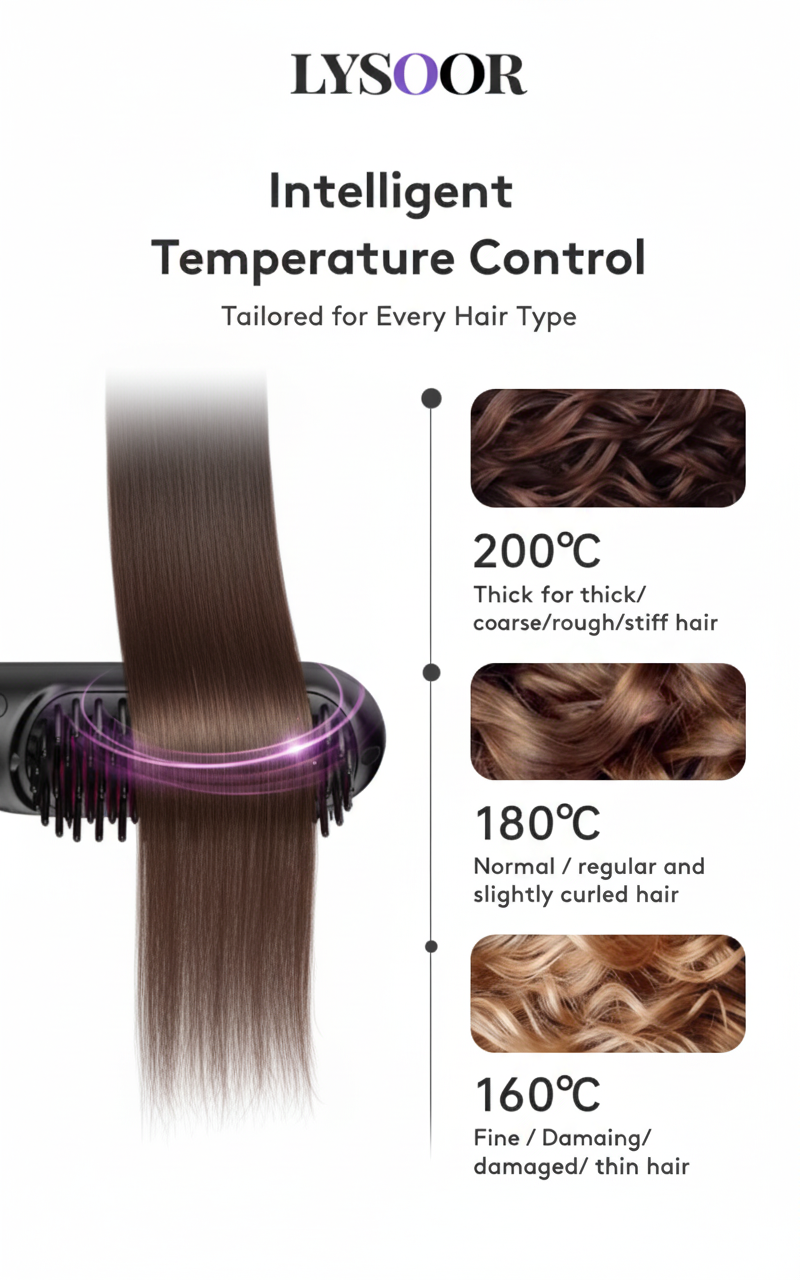 The Lysoor Skilbrush adapts to all hair types with three intelligent temperature levels.